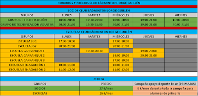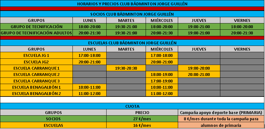 Os adjuntamos el horario de las escuelas y del club, además también podéis ver los precios. Para más detalle e información podéis contactar con nosotros a través de la pestaña CONTACTO.